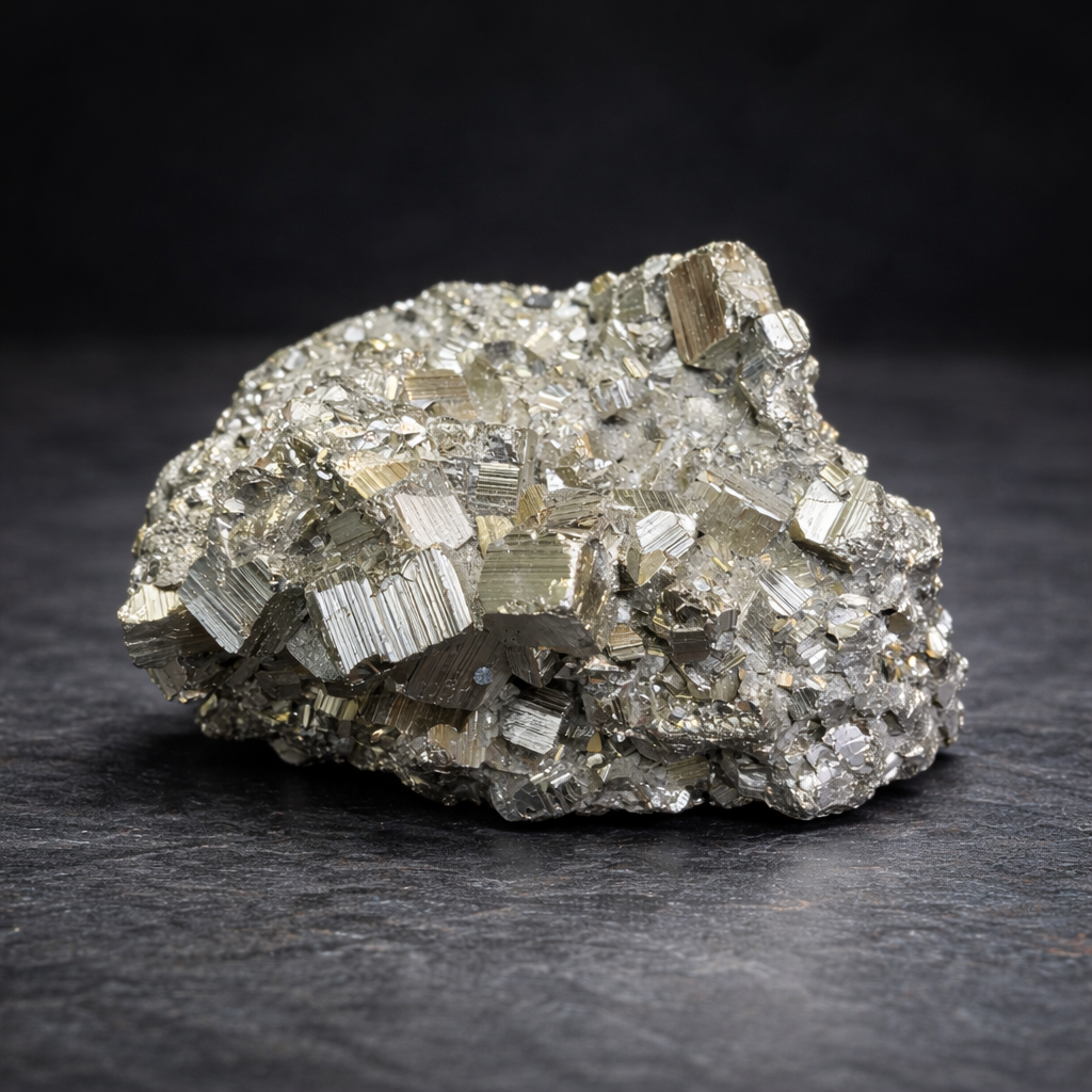 Elegreence Golden Pyarite Geode featuring natural pyrite crystals with golden shimmer. Promotes abundance, confidence, and positive energy. Ideal for décor, meditation, and gifting.