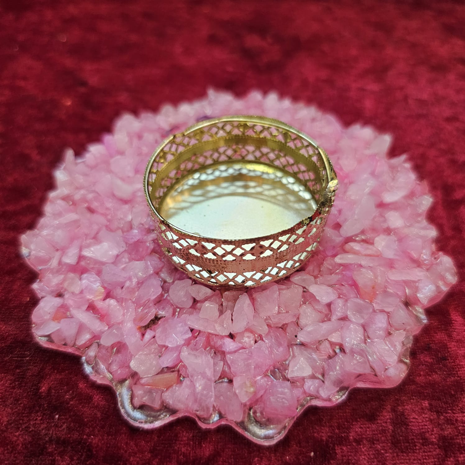 Elegreence Rose Quartz Candle Stand radiates love, harmony, and soothing light—perfect for calming spaces, self-care rituals, and heartfelt gifting.