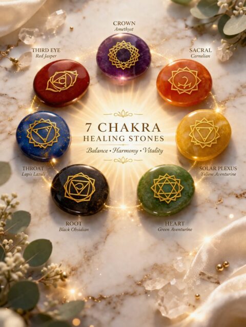 Every stone corresponds to one of the seven major chakras—Root, Sacral, Solar Plexus, Heart, Throat, Third Eye, and Crown—helping to restore energetic alignment and enhance mental, emotional, and spiritual well-being.
